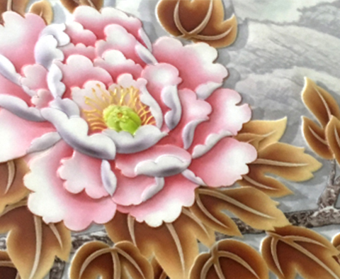 單層或多層白墨推測(cè),最上層覆蓋彩墨,同步浮雕打印,浮雕效果精致,3d感突出
